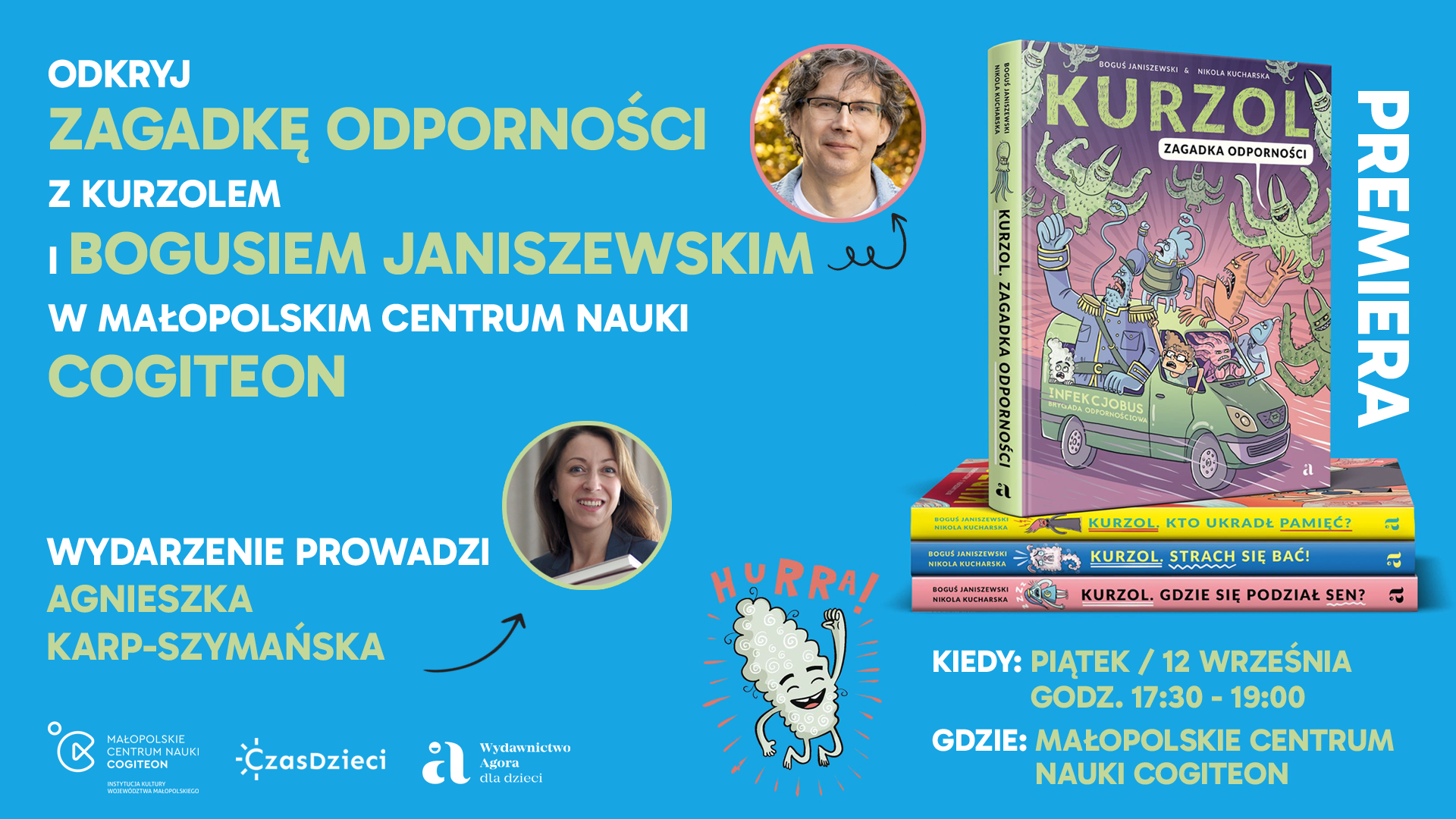 Z okazji premiery książki „Kurzol. Zagadka odporności" zapraszamy Was na prawdziwą przygodę! Wraz z Kurzolem i Bogusiem Janiszewskim nie tylko odkryjemy zagadkę odporności, ale także zakamarki układu odpornościowego, trawiennego… i COGITEONU!