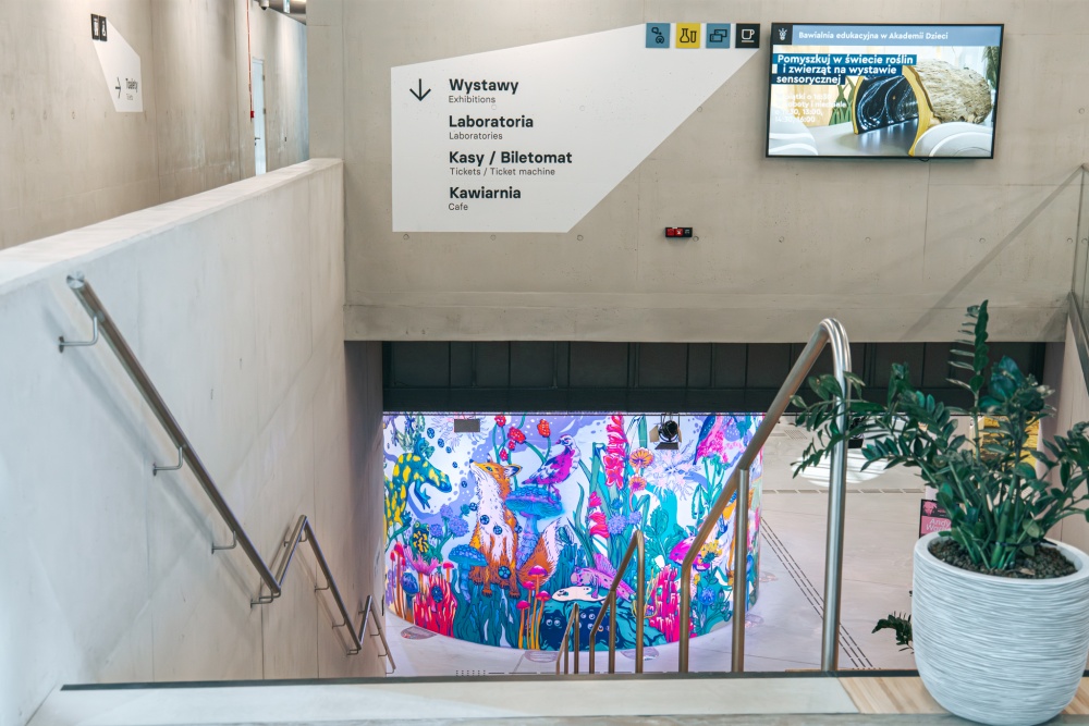 Akademia Dzieci – wystawa przyrodnicza skierowana do najmłodszych dzieci zlokalizowana jest na poziomie 0. Aby się do niej dostać, od wejścia głównego, należy zejść lub zjechać na poziom -1. Następnie skierować się na usytuowane po prawej stronie, względem kas, kolejne schody, tym razem prowadzące do góry – na poziom 0. Po lewej stronie od schodów zlokalizowana jest Akademia Dzieci, tuż obok niej znajduje się Pokój rodzica i restauracja.