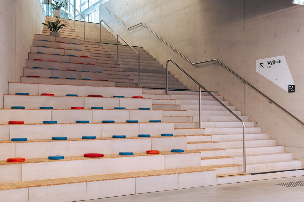 Zdjęcie schodów prowadzących z poziomu -1 na poziom 0.
