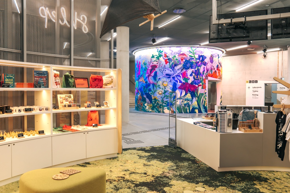 Na poziomie -1 zlokalizowana jest wystawa, sala dla grup, strefa emocji, kasa biletowa ze sklepikiem, automat biletowy, kawiarnia i szatnia oraz miejsce / miejsca odpoczynku. Na poziomie -1 tuż za schodami znajduje się szatnia samoobsługowa i szatnia dla grup.