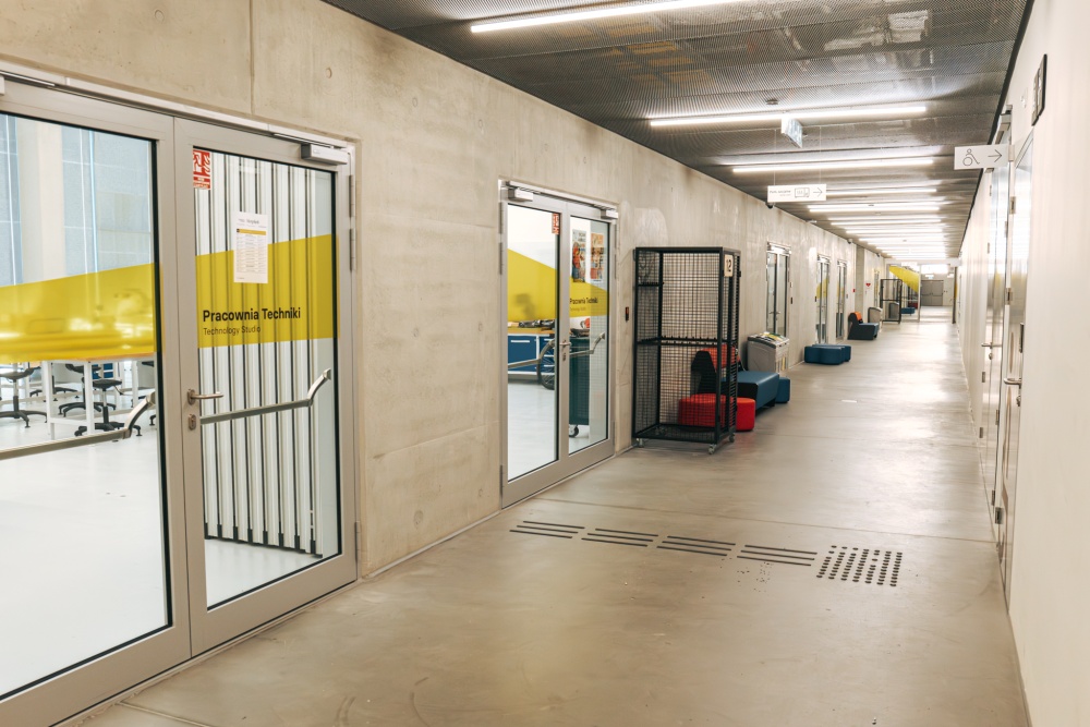 Zdjęcie korytarza przy laboratoriach i pracowniach.