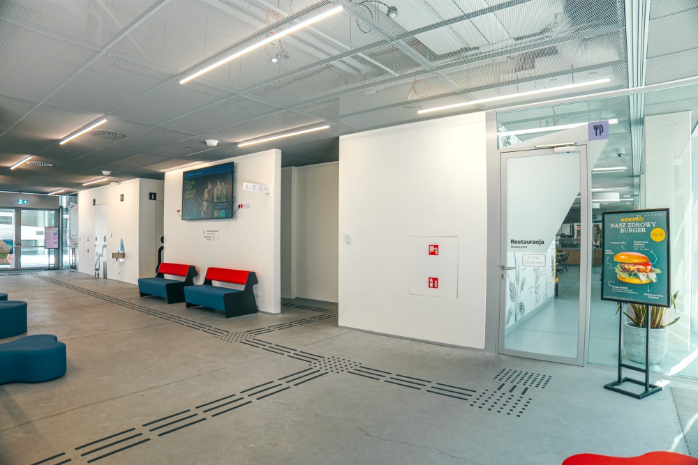 Zdjęcie korytarza prowadzącego do Akademii Dzieci, Pokoju rodzica oraz restauracji